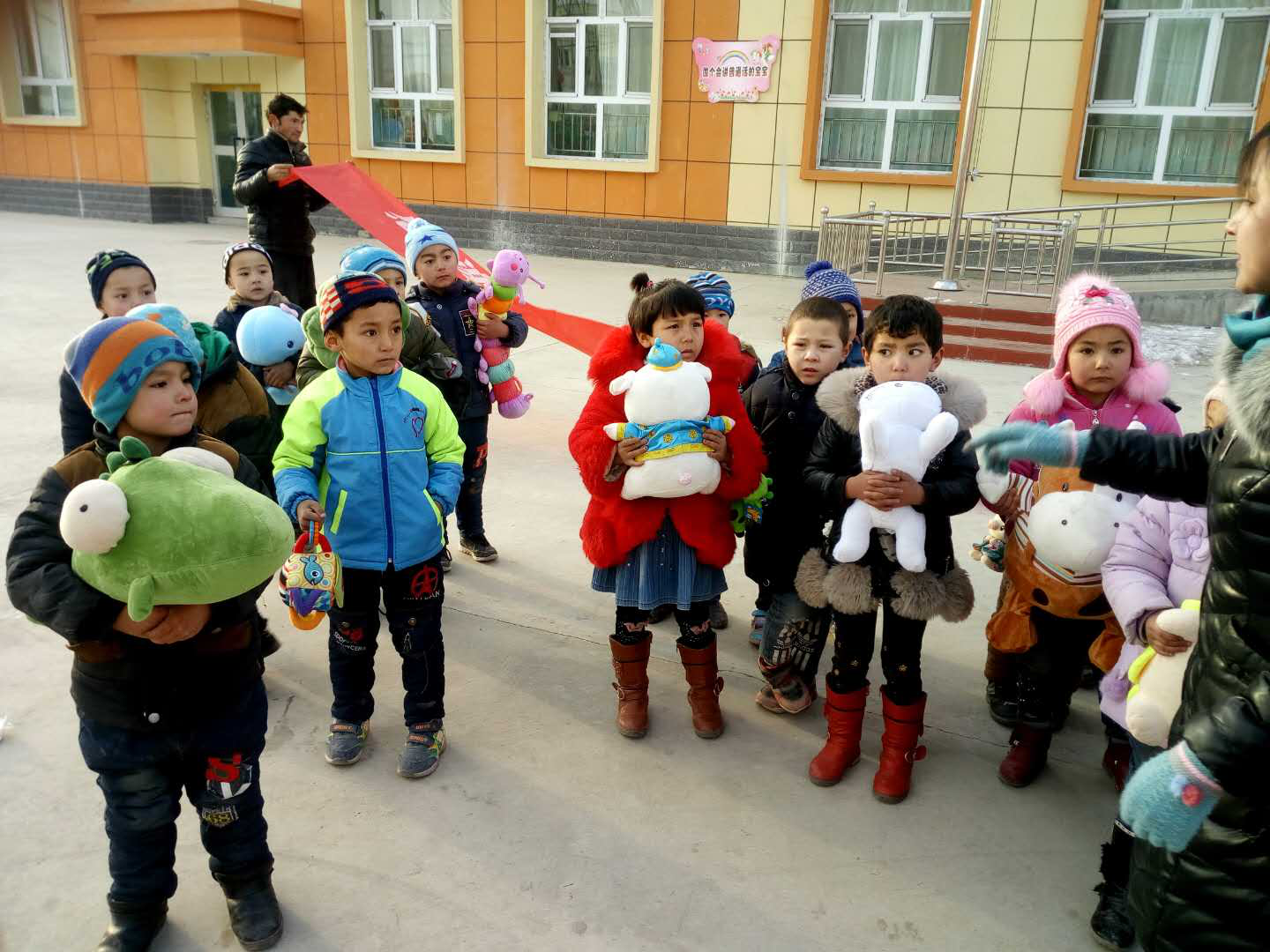 新疆和田市皮縣闊向買里村新建一座幼兒園,地處偏遠,玩具購買不便,幼兒園成立后一直沒有玩具,幼兒午休棉被短缺。新立訊企業對社會公益事業一直秉承著回饋社會、勇于承擔社會責任的宗旨。新立訊企業董事長和高層領導了解該幼兒園情況后,決定以新立訊黨支部的名義進行點對點幫扶。