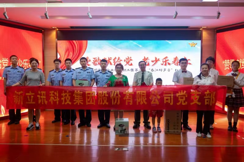 2024年7月1日上午,新立訊科技集團(tuán)黨支部參加由春江社區(qū)黨委聯(lián)合諸多單位舉辦的“贊歌獻(xiàn)給黨 老少樂春江”第八屆“春江好聲音”紅歌賽暨“七一”主題黨日活動(dòng)。一同唱響贊歌,為黨慶生。