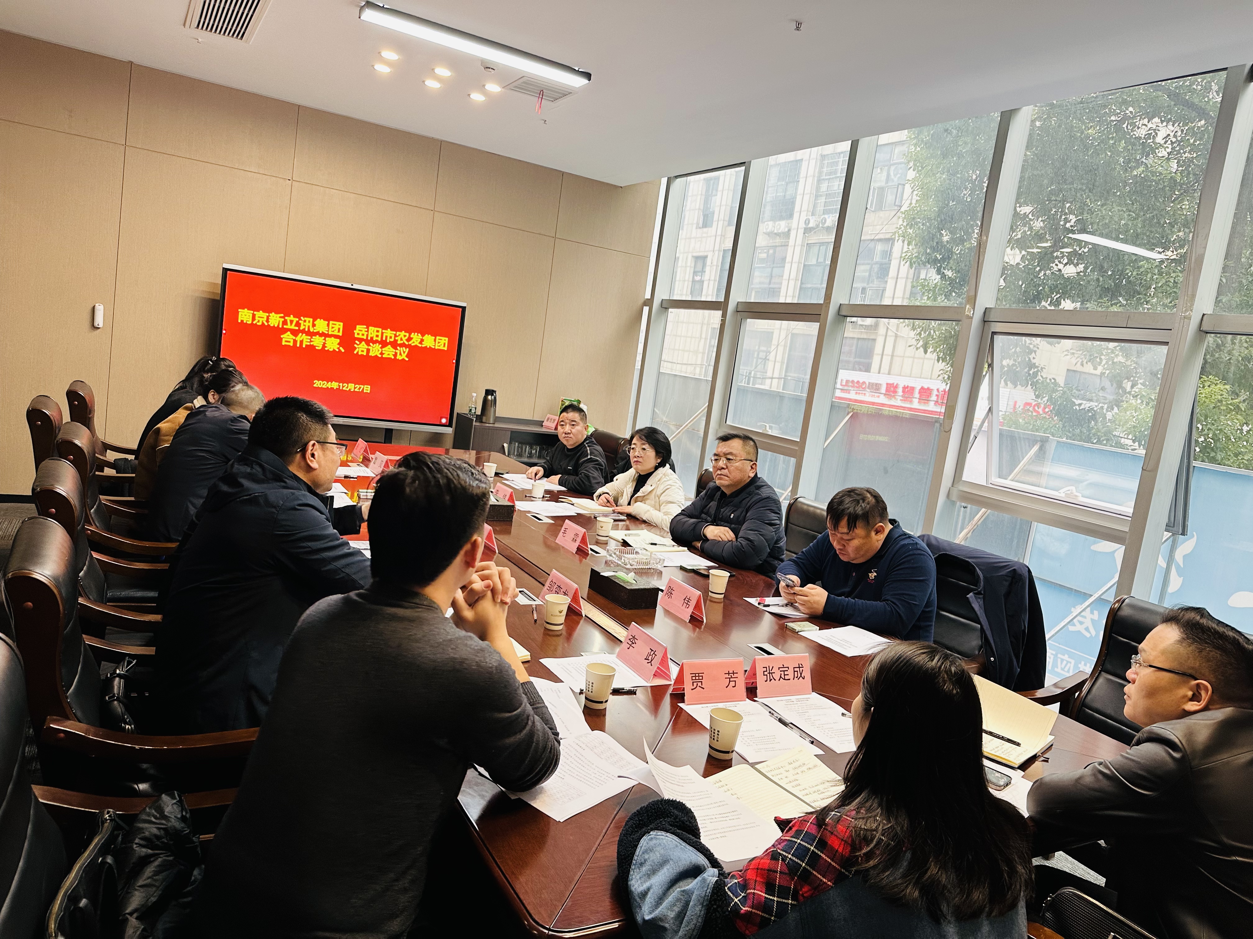2024年12月27日,新立訊科技集團董事長毛霖,常務副總經理李偉,副總經理陳偉等一行赴岳陽農發集團進行考察調研。岳陽農發集團黨委書記、董事長鄒國良等會見毛霖一行并舉行座談。岳陽市供銷合作聯社黨委書記、主任向風行、副主任鄒變龍等參加座談。