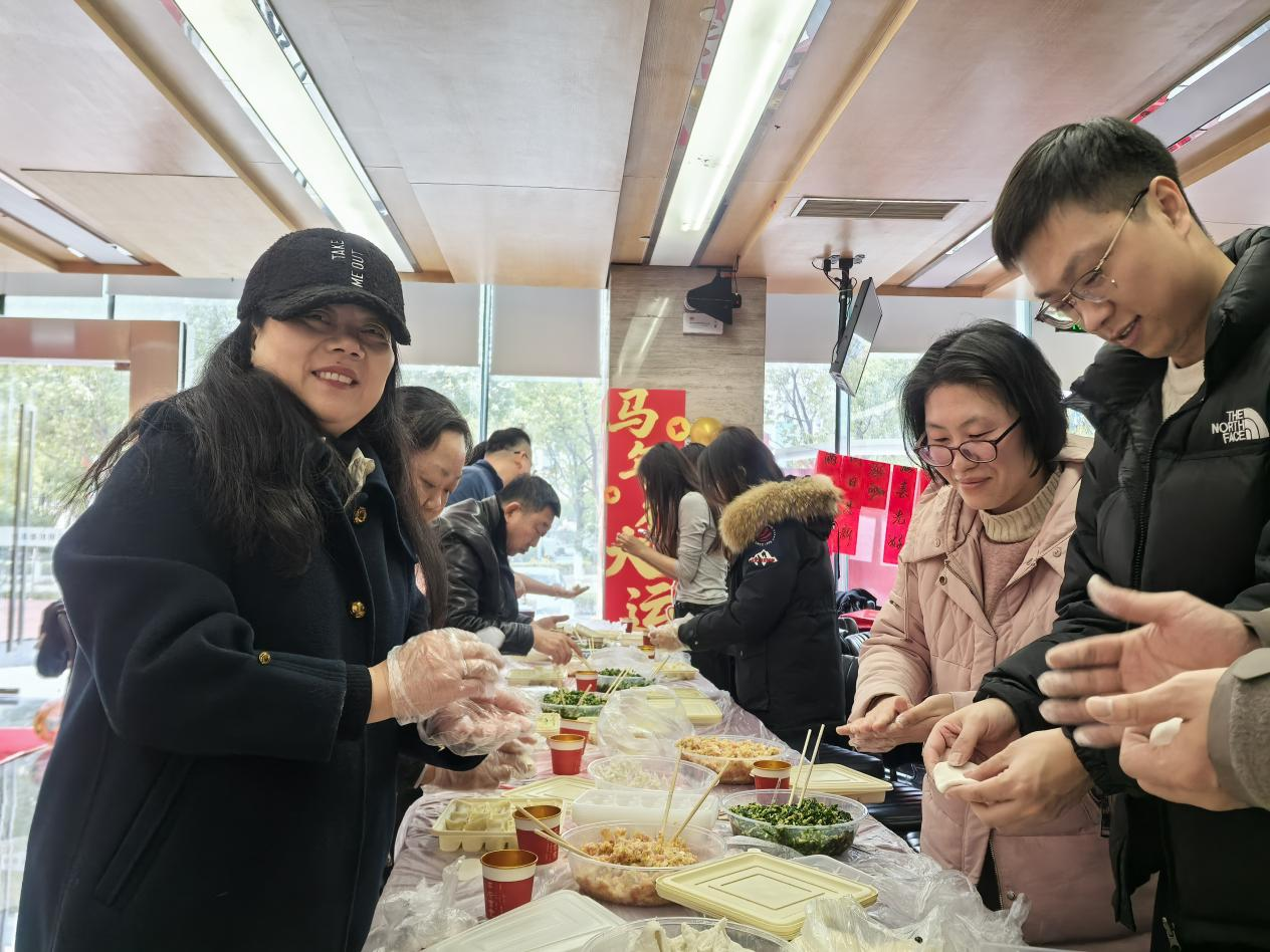 活動(dòng)現(xiàn)場(chǎng),新立訊黨員代表與社區(qū)黨員、其他共建單位成員分工協(xié)作,包餃子、揉面團(tuán)、包湯圓。大家將餡料填入面皮,揉搓成圓潤的湯圓,現(xiàn)場(chǎng)歡聲笑語不斷。