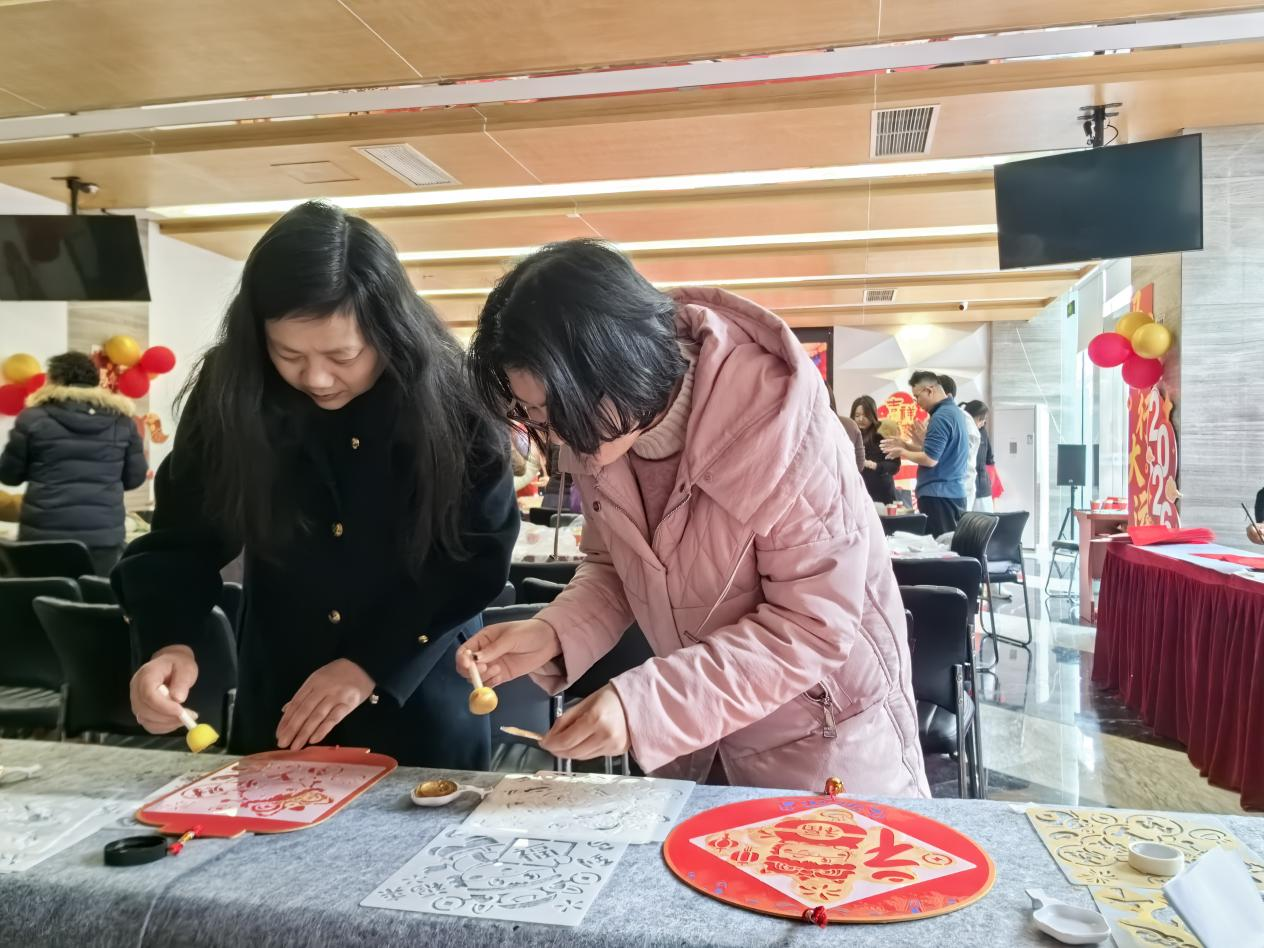 寫福字對(duì)聯(lián)及民俗拓印區(qū),新立訊黨員代表與社區(qū)黨員共同創(chuàng)作,紅紙、毛筆、墨汁與拓印模板成為傳遞新年美好寓意的載體,增添節(jié)日儀式感。