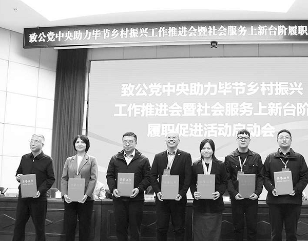 4月1日,致公黨員們齊聚貴州畢節,召開致公黨中央助力畢節鄉村振興工作推進會,研究部署新一年幫扶畢節鄉村振興工作,并全面啟動致公黨社會服務上新臺階履職促進活動。致公黨中央主席蔣作君表示,要緊扣中共中央“強化科技和人才支撐”“扎實推進宜居宜業和美鄉村建設”要求,將僑海特色、人才優勢、社會資源與幫扶地區發展需求精準對接,推動教育醫療、民生改善、鄉村治理等方面工作從“量的積累”向“質的提升”跨越。