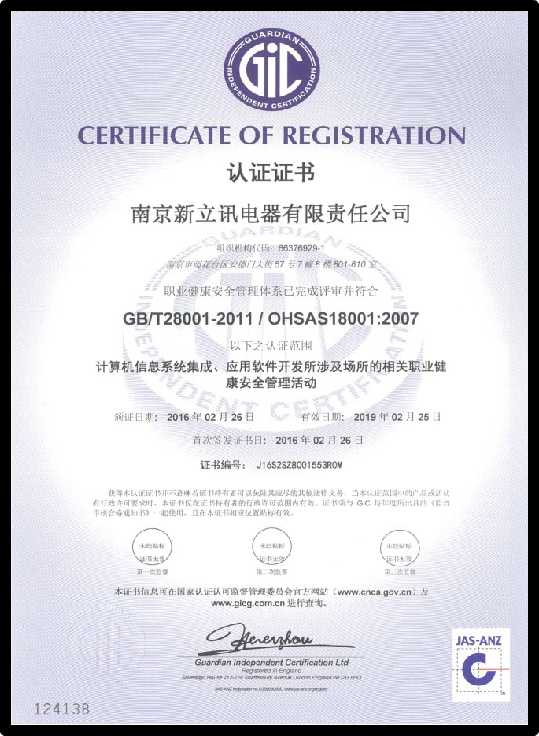 2016年2月28日,經過嚴格有序的認證審核,審核組專家就南京新立訊電器有限責任公司體系運行現狀的具體情況進行總結,并給予了客觀的評價。專家組表示,新立訊 ISO三大管理體系運行狀況良好,符合體系認證的要求。經過專家組的認定和審核,南京新立訊電器有限責任公司順利通過了ISO9001質量管理體系、ISO14001環境管理體系、OHSAS18001職業健康安全管理體系認證,獲得了相關證書。此次三大管理體系的認證,標志著新立訊企業質量管理水平和管理理念的不斷提升,為企業向社會提供優質的產品和服務提供了強有力的保障。
