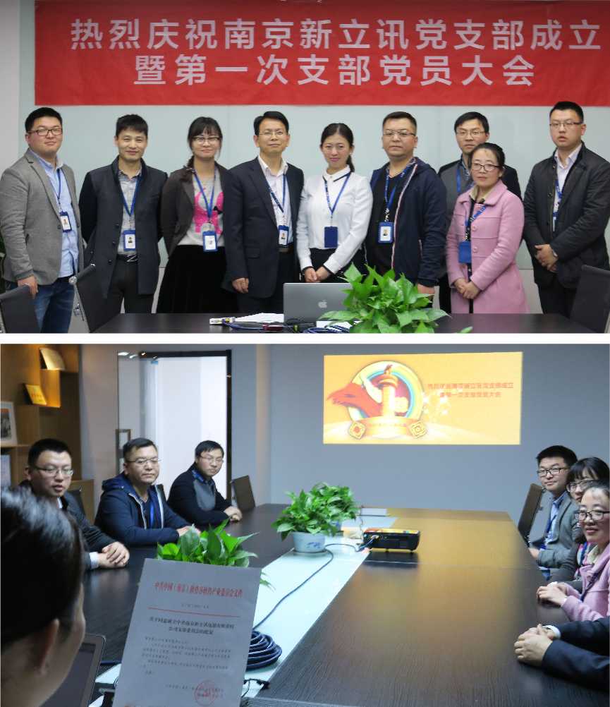 新立訊公司成立于2007年,現有主營業務包括智慧教育、熱源制造等,公司在發展過程中吸收了大量優秀的年輕人加入團隊,主動承擔更多的社會責任。隨著公司業務規模不斷擴展,公司團隊日益強大,員工中黨員比例也在逐漸增大。為了更好的向黨組織靠攏,提高員工的組織歸屬感及使命感,2016年3月23日,經中共中國(南京)軟件谷軟件產業委員會批準,南京新立訊電器有限責任公司黨支部正式成立,并成功召開第一次支部黨員大會。全體黨員及入黨積極分子歡聚一堂,共同見證了公司黨支部成立的光榮時刻。公司董事長兼總經理毛霖先生、副總經理韓榮先生代表公司高層參加了會議,并對公司成立黨支部表示祝賀。
