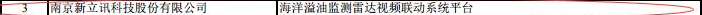 2017年6月22日,經過區(開發區)推薦、主管部門審核和專家評審等程序,南京新立訊科技股份有限公司-----“海洋溢油監測雷達視頻聯動系統平臺項目”榮獲南京市軟件和信息服務業發展專項資金。該平臺通過擴展和集成海域望遠高清視頻監控、多用途微波雷達、AIS、電子海圖系統、海洋浮標、衛星遙感等多種監視監測手段和信息采集方式構成海域綜合立體多維感知監視監測大系統,形成綜合性多系統智能信息融合。同時,該專項資金的獲得既是對新立訊在“藍色海洋”領域深度拓展的充分肯定,也激勵新立訊進一步增強該平臺在海上能源領域的應用效能。