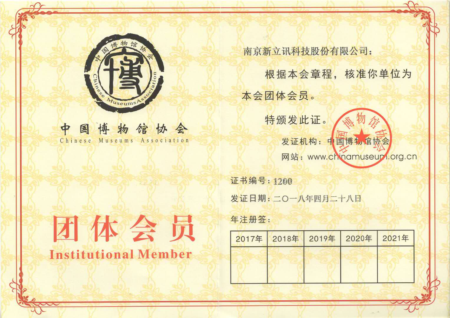 2018年4月28日,在多家博物館的聯(lián)合推薦下,中國博物館協(xié)會正式核準南京新立訊科技股份有限公司成為該協(xié)會團體會員單位,并頒發(fā)團體會員證書。