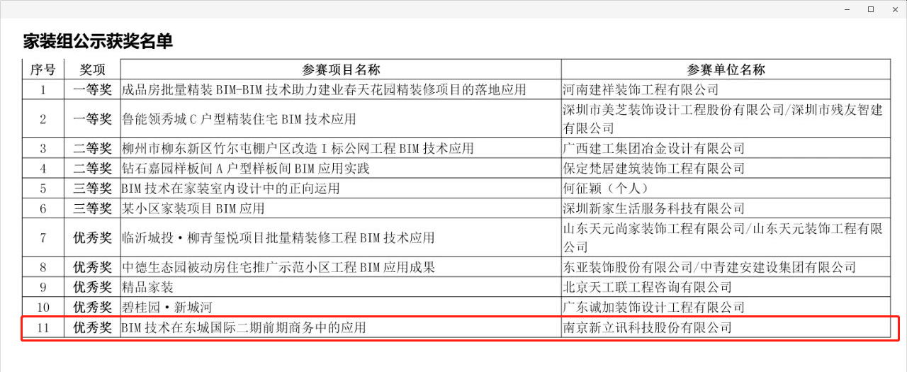 新立訊獲首屆中國建筑裝飾BIM大賽優秀獎