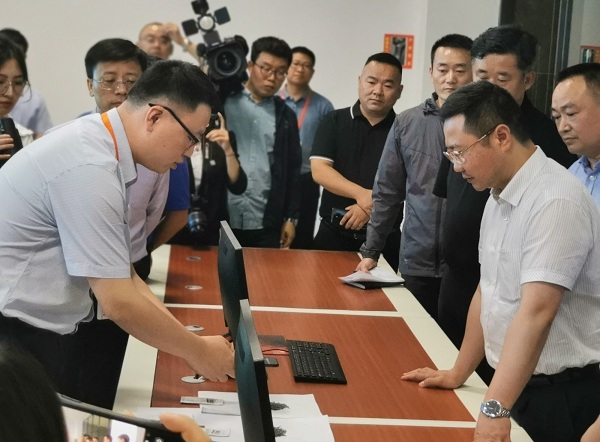 2020年5月19日,遵義市委副書(shū)記、市長(zhǎng)黃偉,遵義市人大副主任田剛,遵義市政協(xié)副主席、湄潭縣委書(shū)記魏在平,湄潭縣縣長(zhǎng)李勰等相關(guān)領(lǐng)導(dǎo)蒞臨貴州遵義茶葉交易中心考察AI鑒真識(shí)別與溯源技術(shù)在湄潭茶產(chǎn)業(yè)中的應(yīng)用,新立訊公司人員陪同考察。