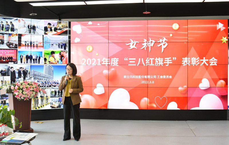 為豐富新立訊女職工的文化生活,表彰先進,增強公司凝聚力,在第112個“三八”國際勞動婦女節來臨之際,新立訊黨支部及工會委員會在總部隆重召開三八國際婦女節表彰大會,大會由新立訊監事會主席、工會主席王宗蘭主持。