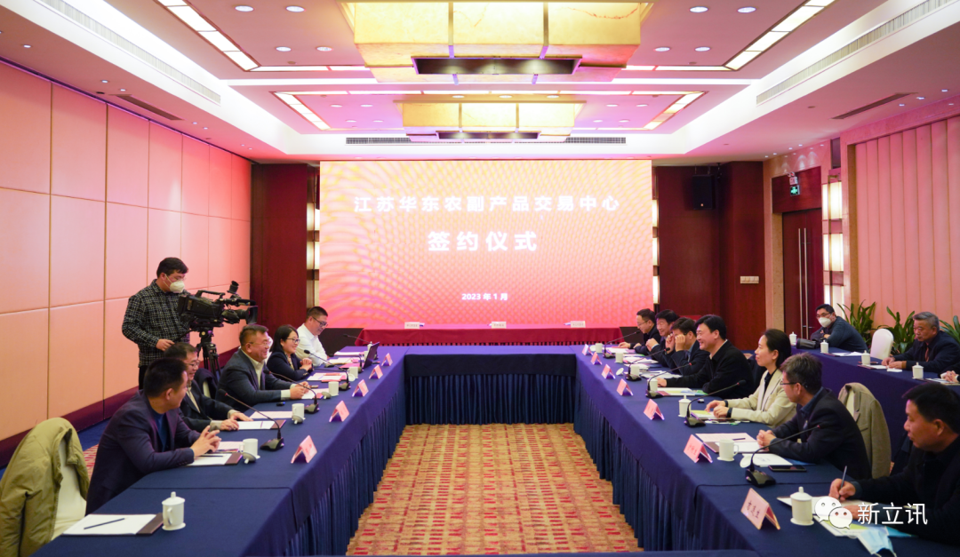2023年1月10日,“江蘇華東農副產品交易中心簽約儀式”在江蘇鹽城市鹽都區驛都金陵大酒店隆重舉行。鹽都區委副書記、區長馬正華,鹽城市供銷合作總社黨委書記、理事會主任朱雯,鹽都區委副書記、副區長朱偉,新立訊董事長(兼青海農林牧商品交易中心董事長)毛霖,鹽城市供銷合作總社黨委委員、理事會副主任沙附生,鹽都區農業農村局、區供銷社、區國控集團等相關負責同志共同出席簽約儀式。