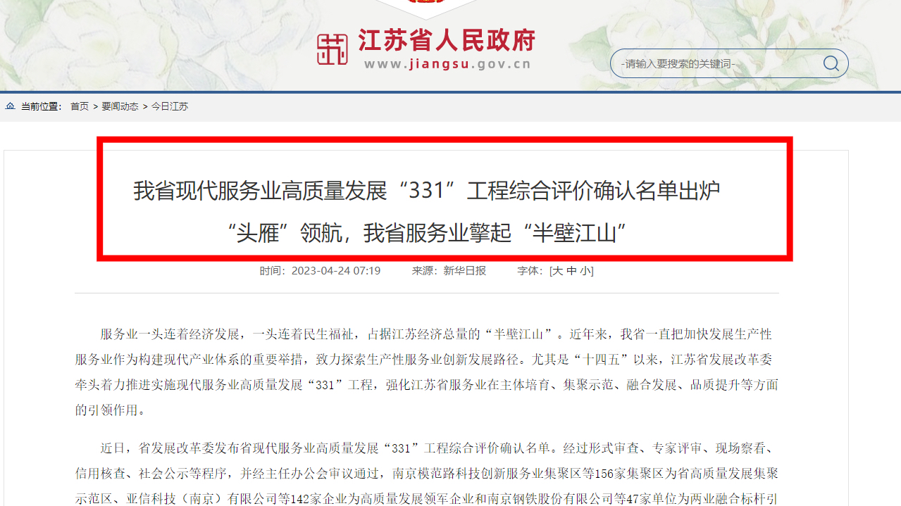 近日,新立訊科技股份有限公司上榜江蘇省現(xiàn)代服務(wù)業(yè)高質(zhì)量發(fā)展領(lǐng)軍企業(yè)“331”工程綜合評(píng)價(jià)確認(rèn)名單中領(lǐng)軍企業(yè)。