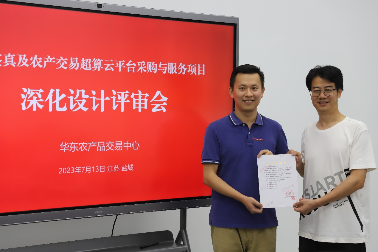 2023年7月13日下午, 華東農產品交易中心邀請南京郵電大學季一木教授,南京信息工程大學方巍教授,南京航空航天大學施慧彬副教授,南京工業大學張帆教授、繆小冬教授、陳獻富副教授等相關行業專家以及鹽都區委政府、鹽城市供銷社、鹽都國控集團、新立訊、鹽瀆街道等代表出席,經選舉組成專家評審組,在鹽都區新城商務中心“華東交易中心籌備處”對江蘇移動系統集成有限公司提交的“AI鑒真及農產交易超算云平臺深化實施方案”進行二次專家評審,會議由華東農產品交易中心董事長兼總經理毛霖主持。