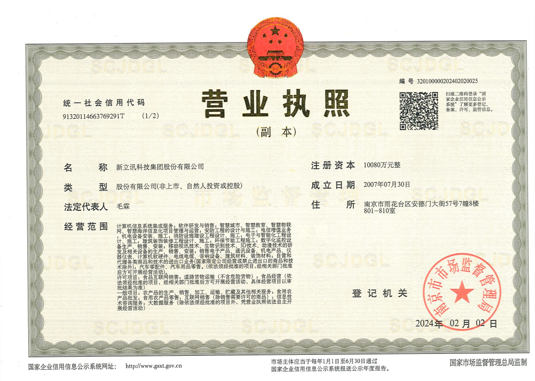 “新立訊科技股份有限公司”經國家市場監督管理總局核準,南京市市場監督管局登記備案,正式更名為“新立訊科技集團股份有限公司”,簡稱“新立訊科技集團”。